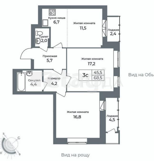 68.5м²