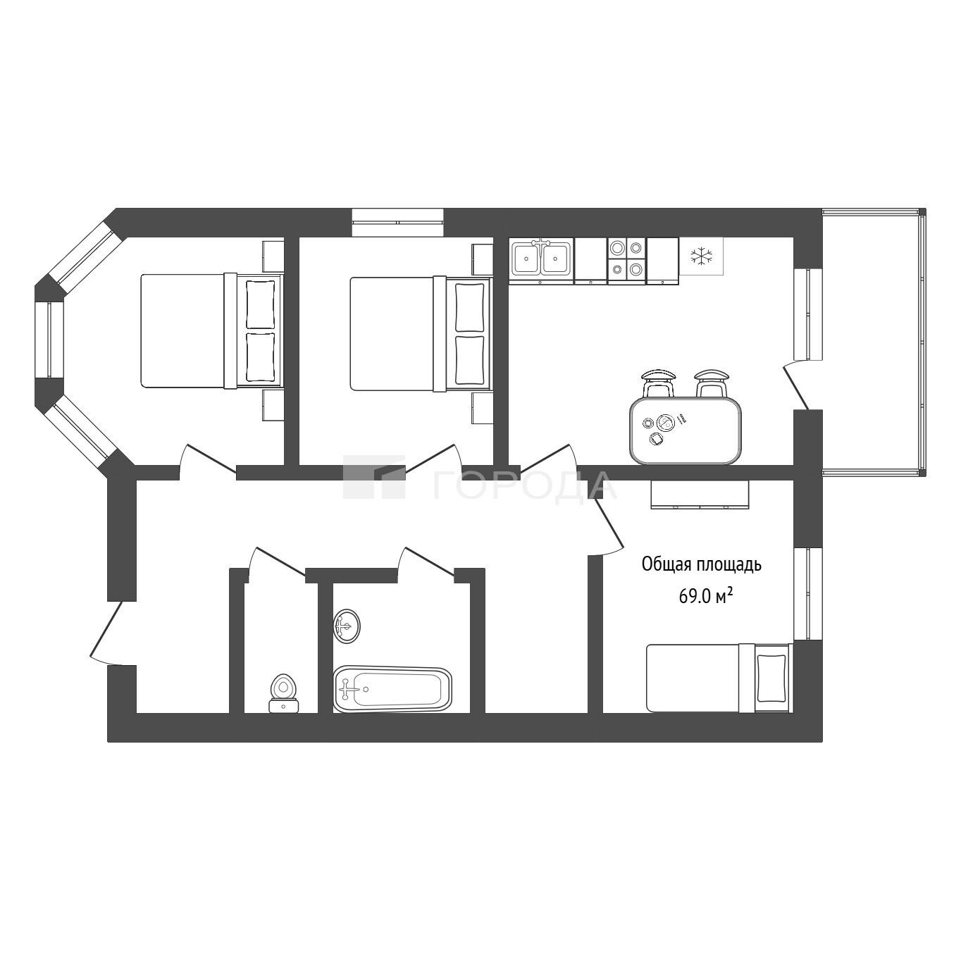 - 69 м2