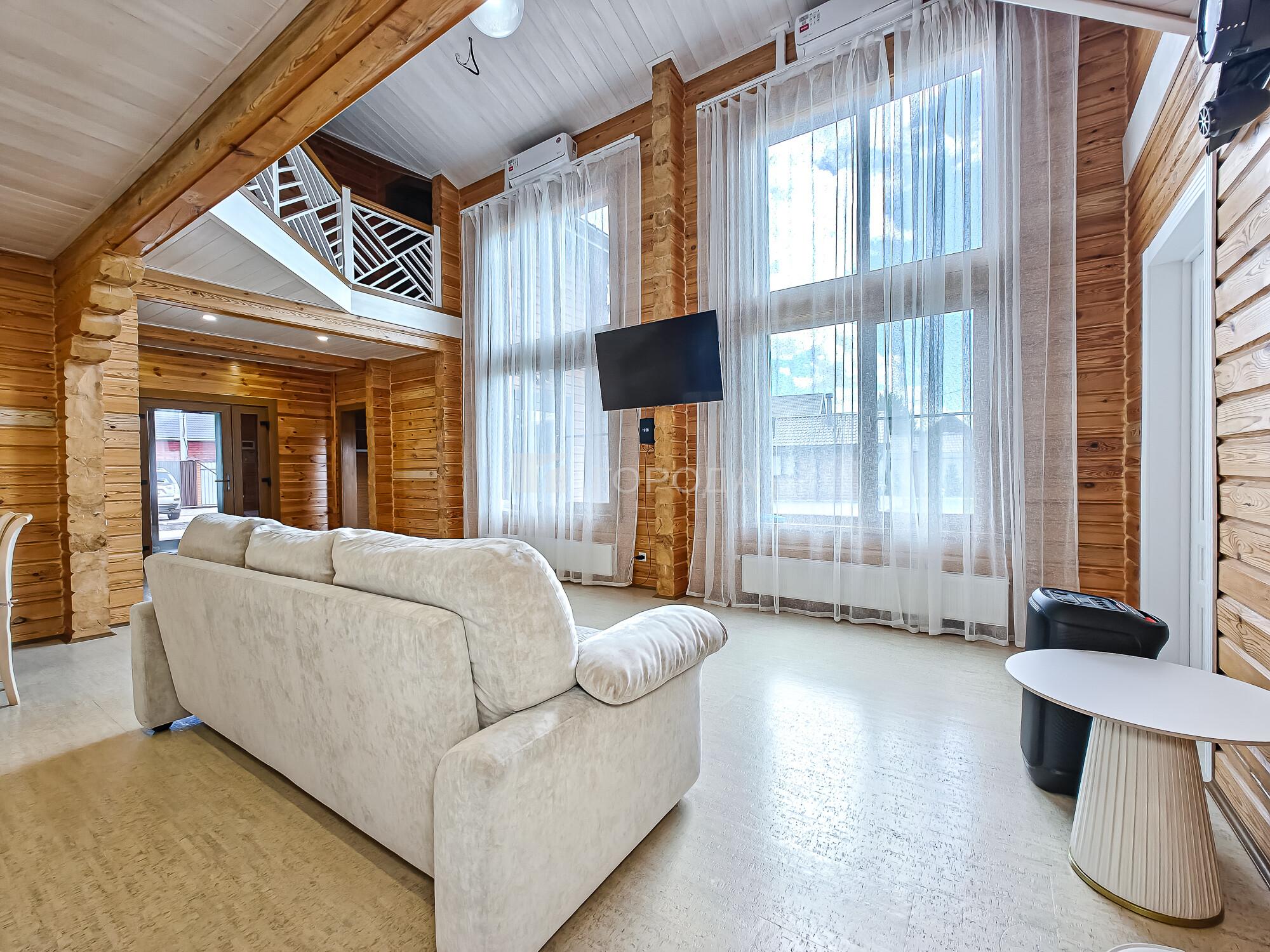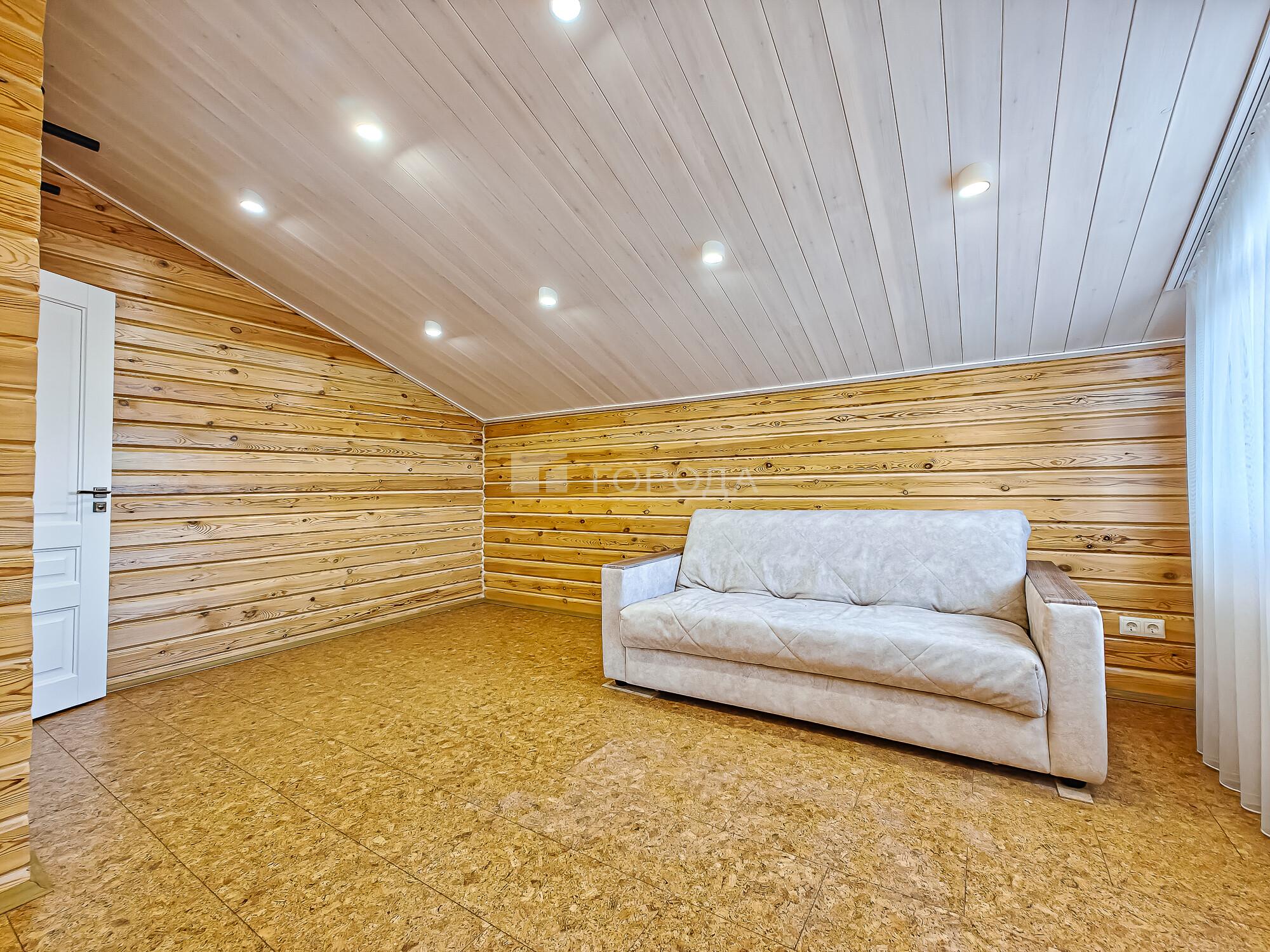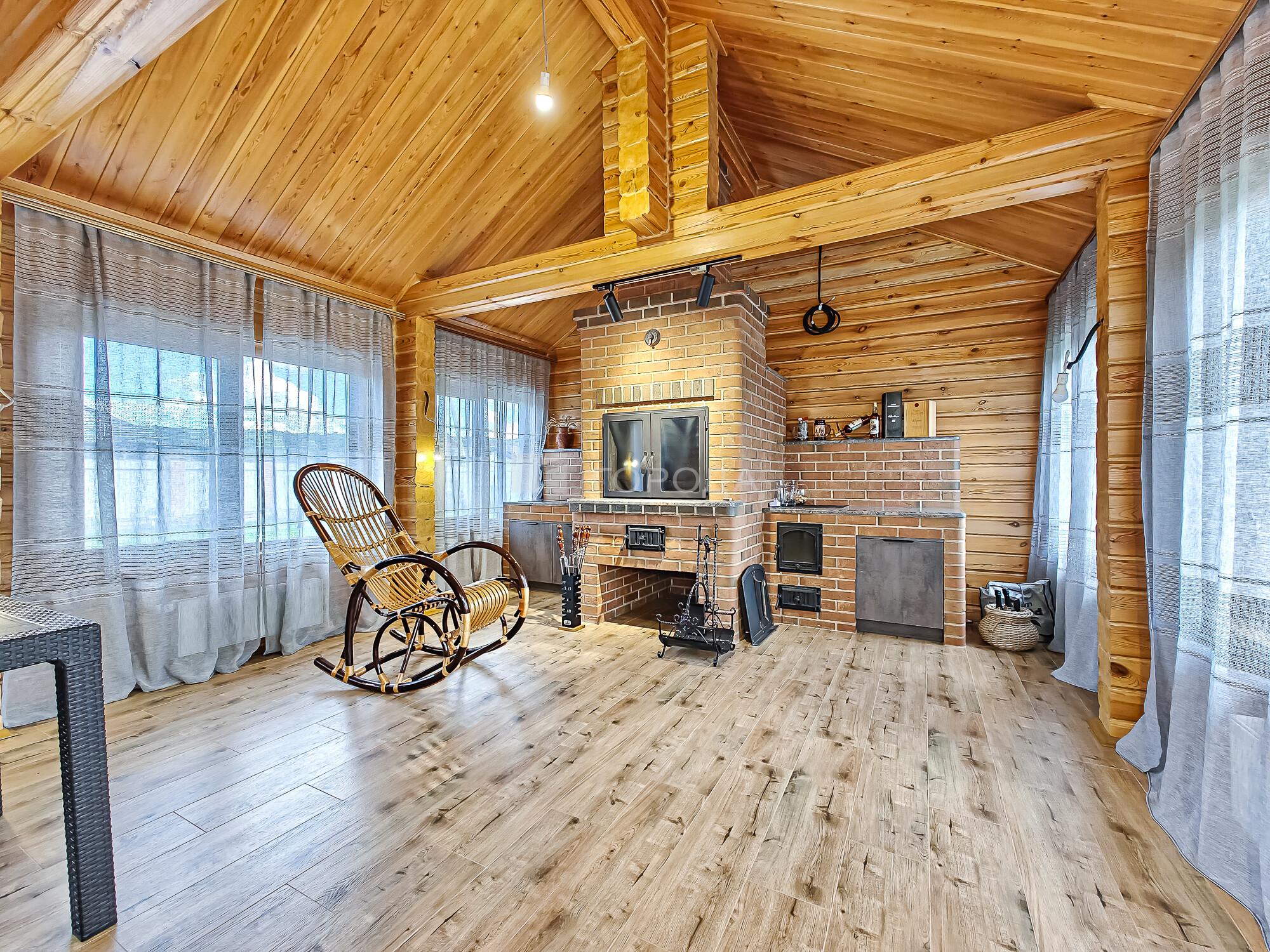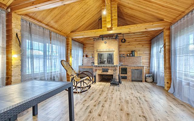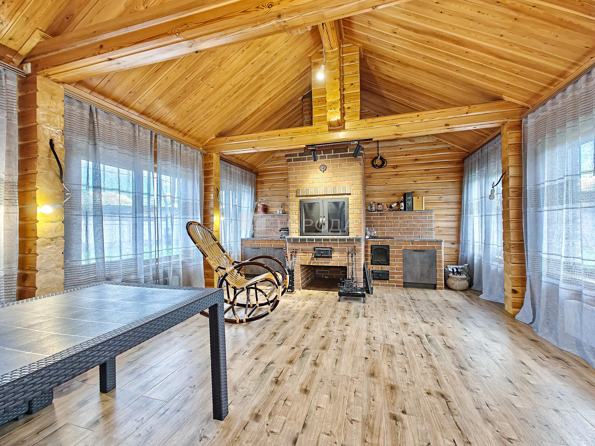 -Баня из оцилиндрованного бревна :просторная комната отдыха, моечное отделение, парильная.