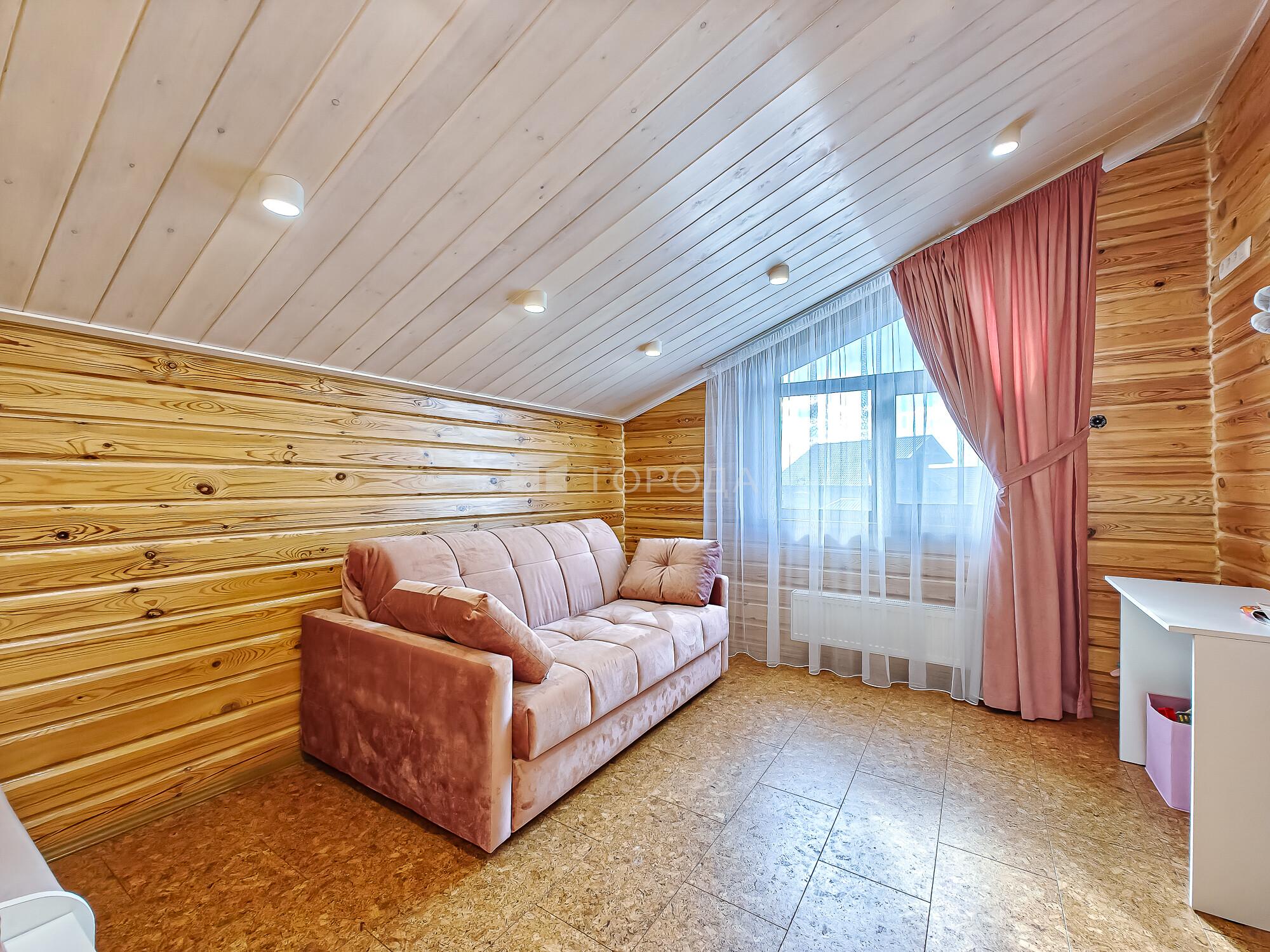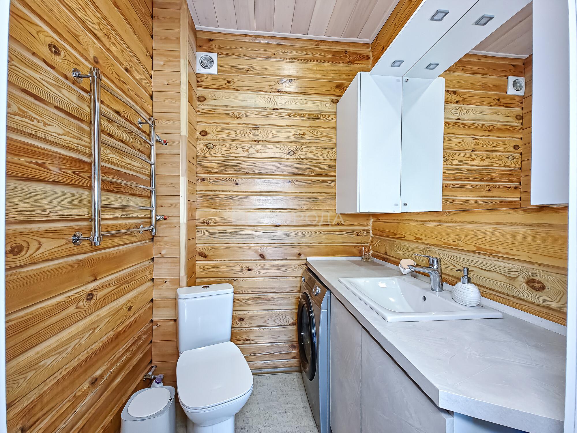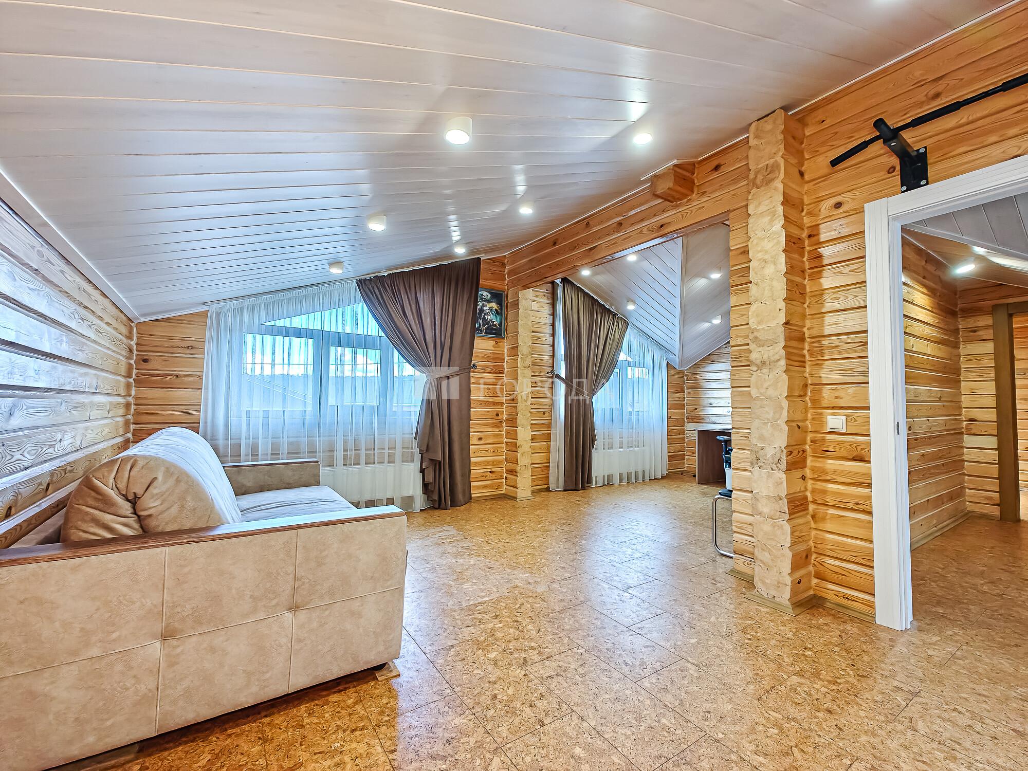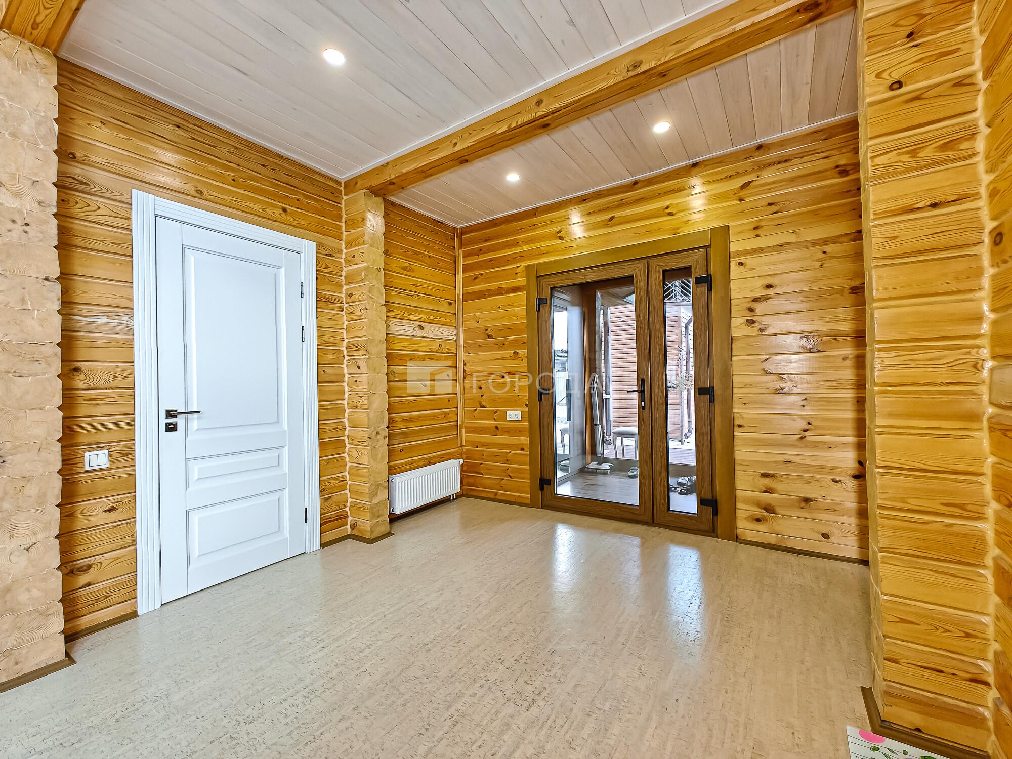 -Баня из оцилиндрованного бревна :просторная комната отдыха, моечное отделение, парильная.