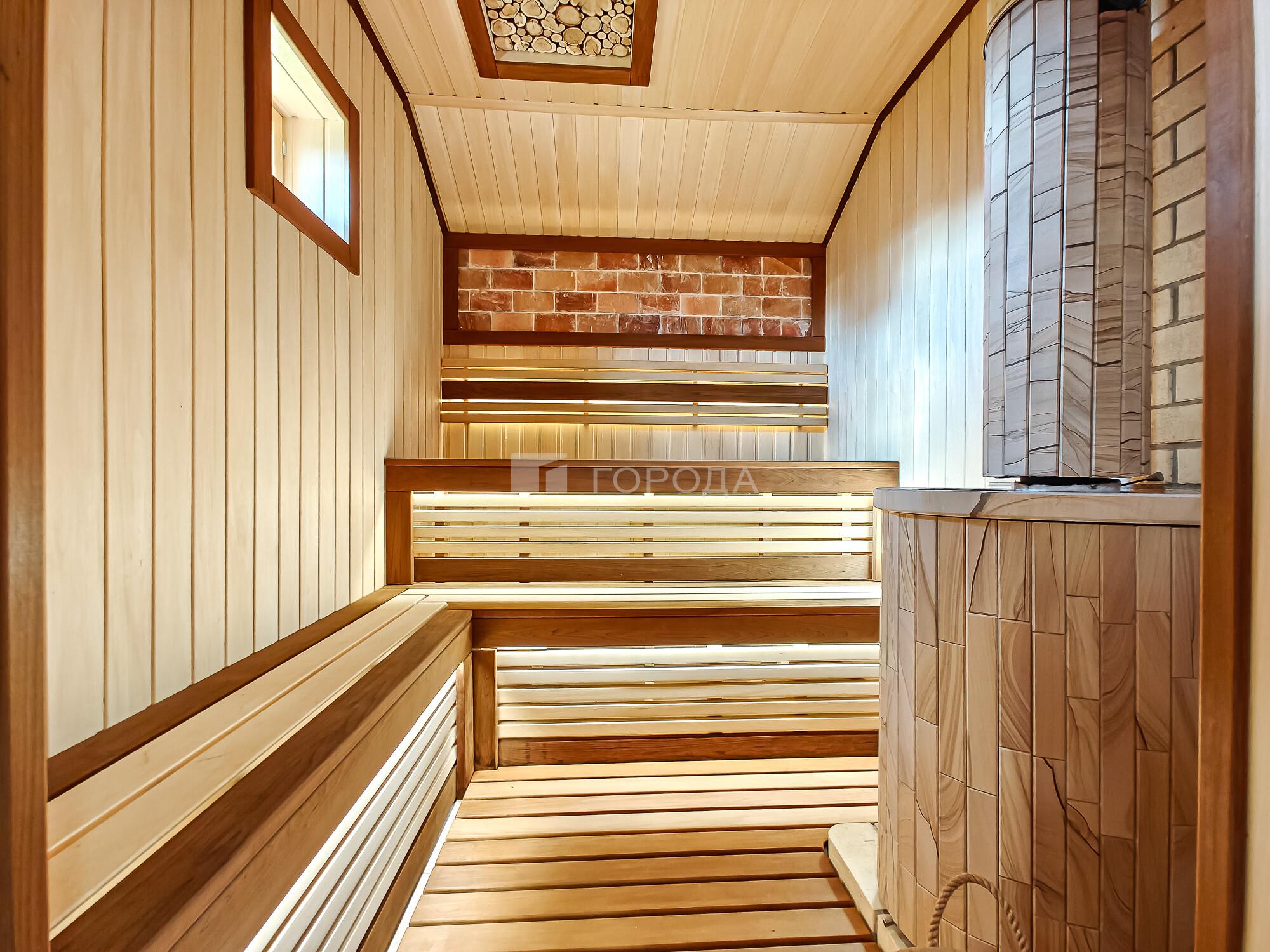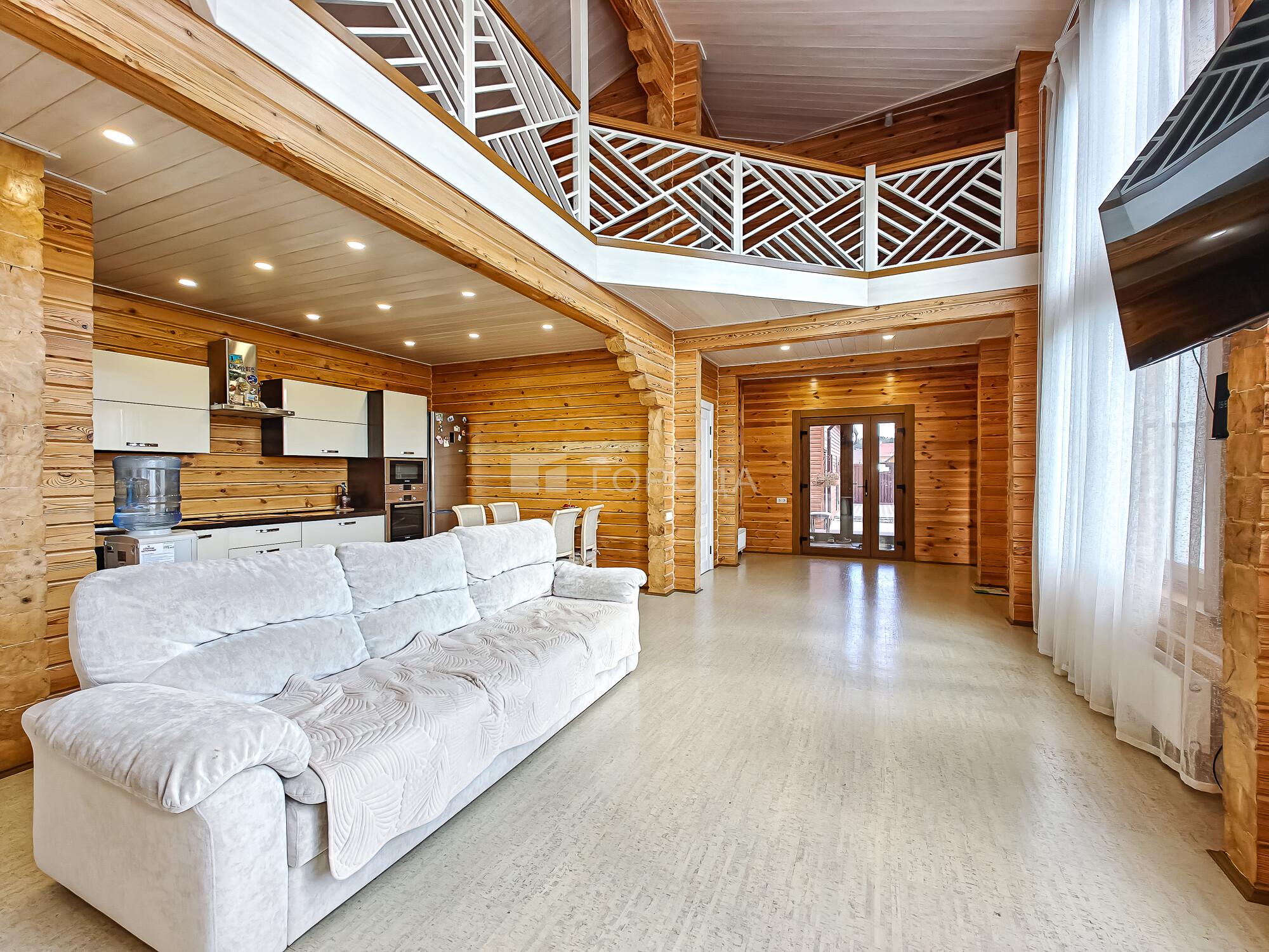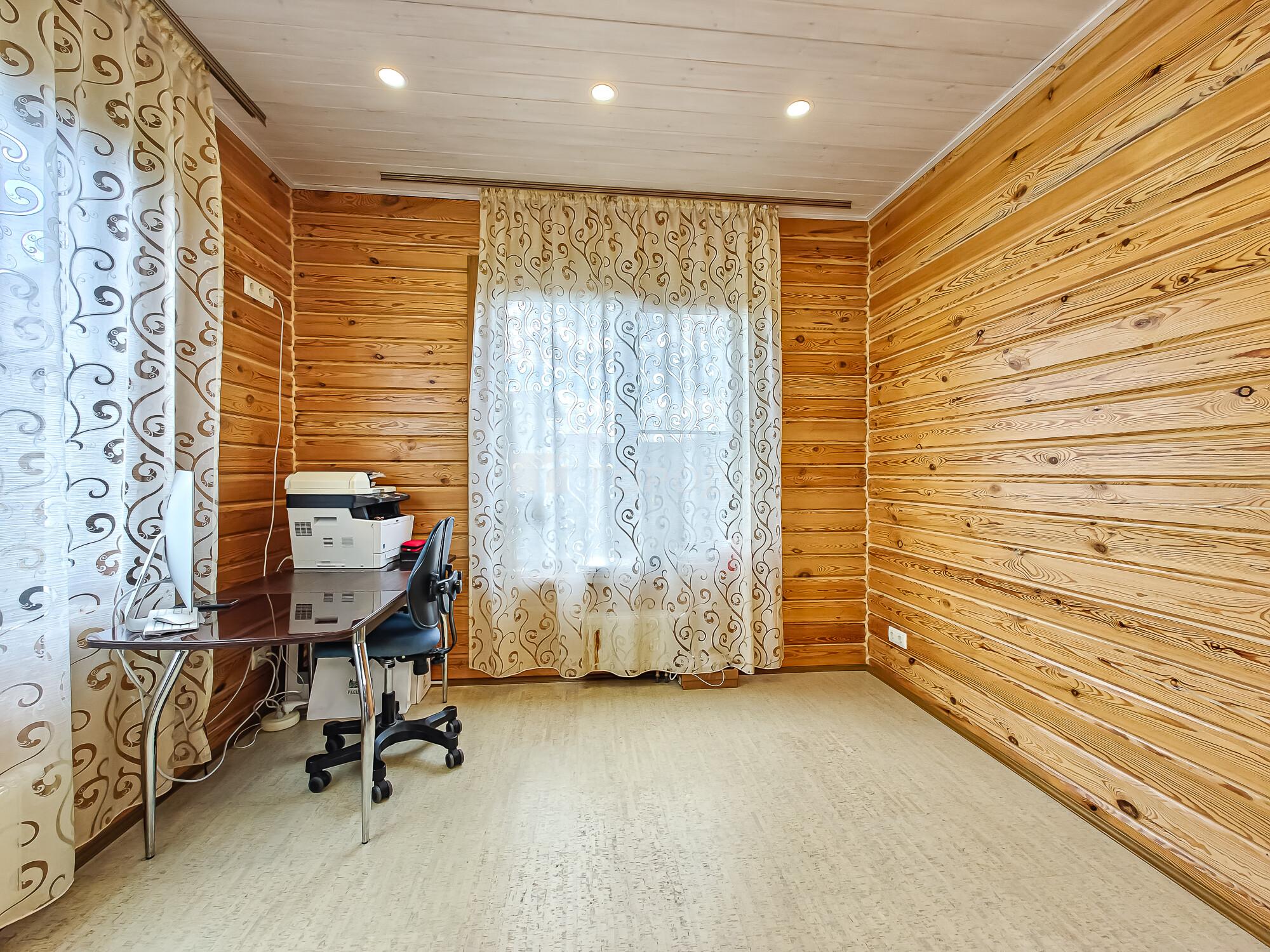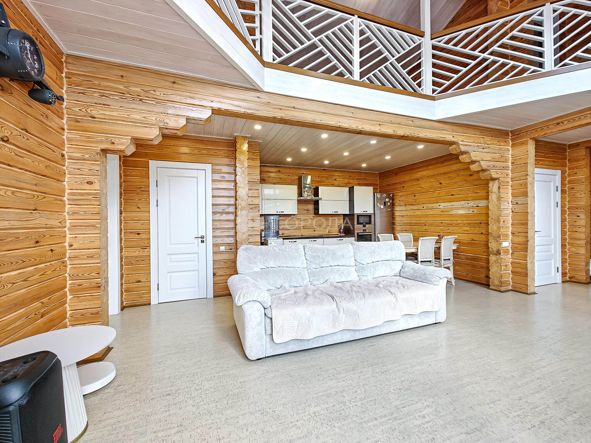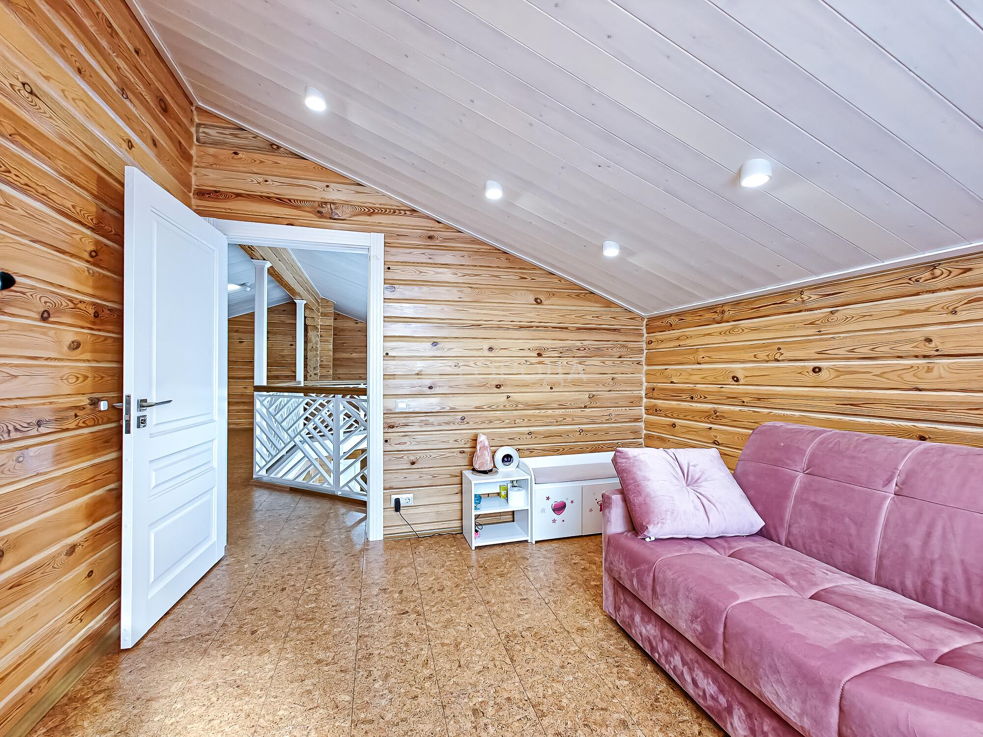 -Баня из оцилиндрованного бревна :просторная комната отдыха, моечное отделение, парильная.