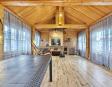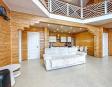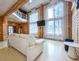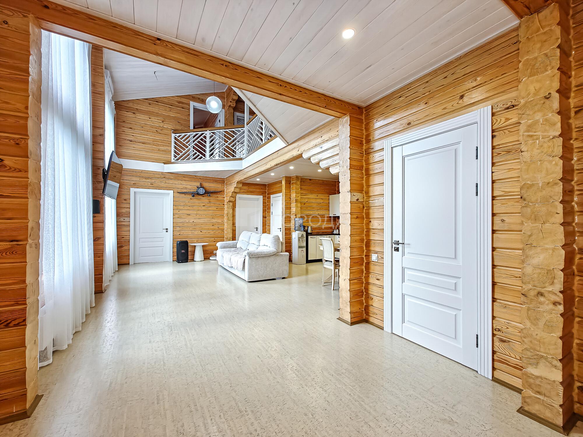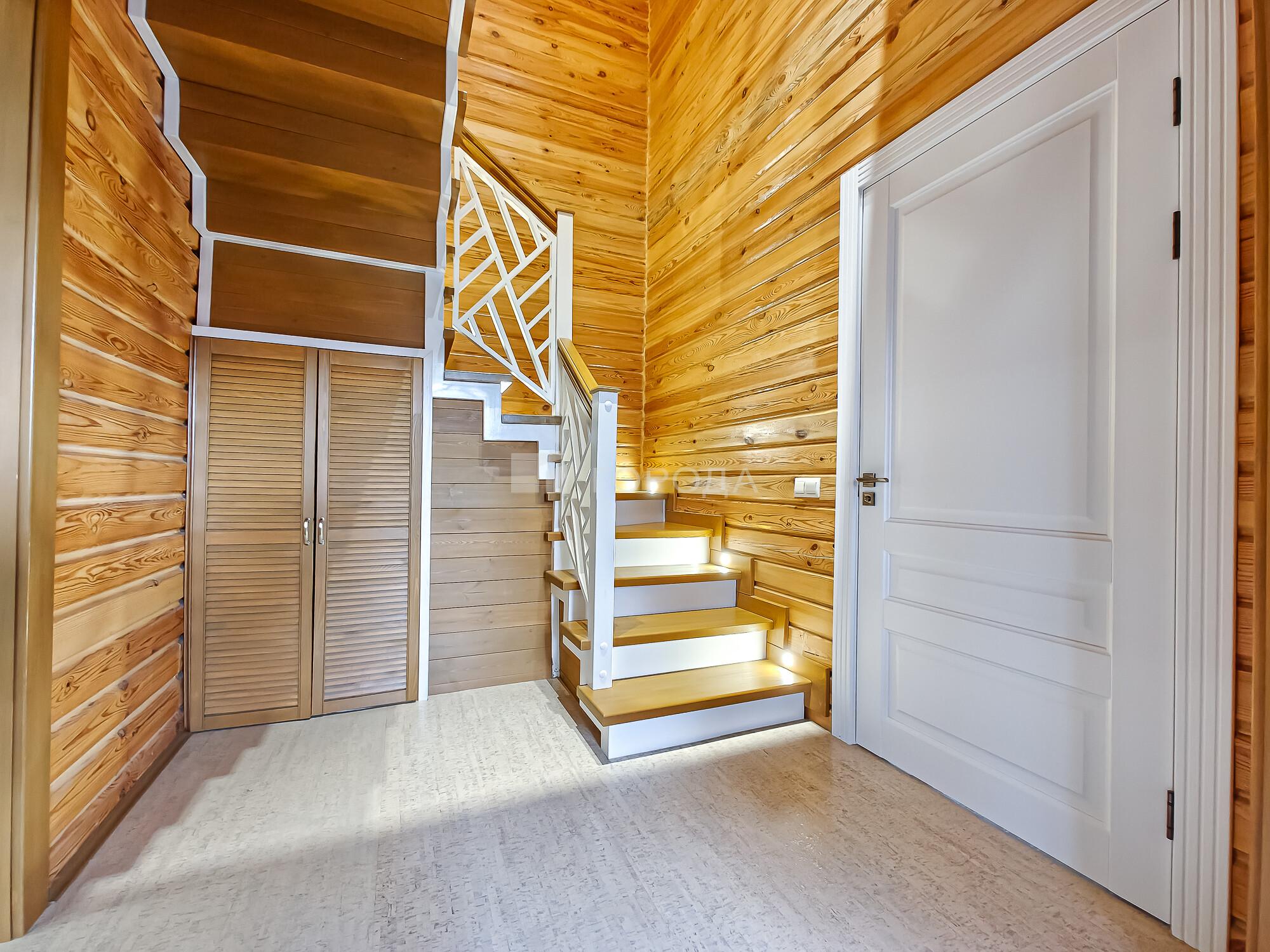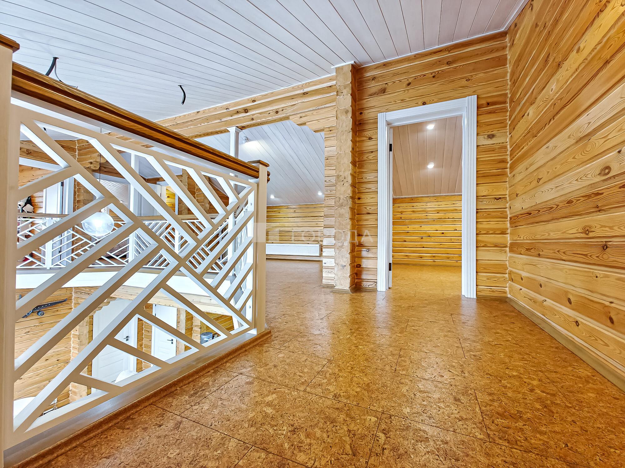 -Поднимаемся по деревянной лестнице на второй этаж дом: где расположены три уютные спальни, холл в виде балкона где открывается вид на гостиную с панорамными окнами