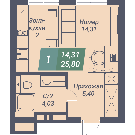 - 25.8 м2