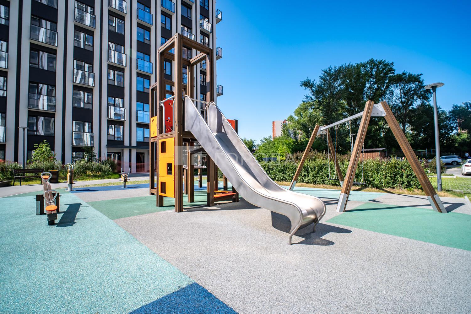 Закрытая охраняемая территория с детской и спортивной площадками, а также зонами отдыха. Организованы проезды и тротуары, проведено озеленение двора. Для автовладельцев предусмотрен подземный паркинг и места на наземных стоянках. Безопасность жильцов обеспечивают камеры видеонаблюдения.