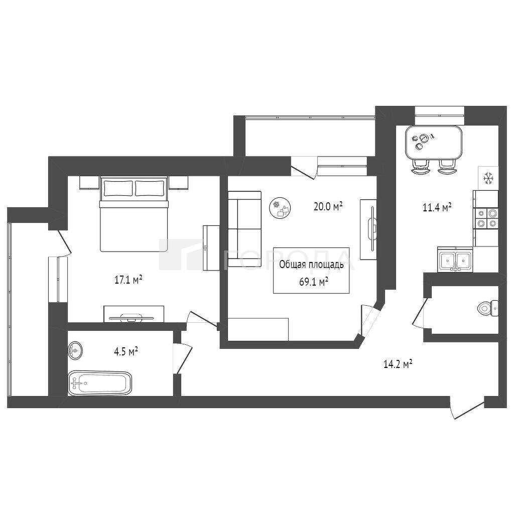 - 69.1 м2