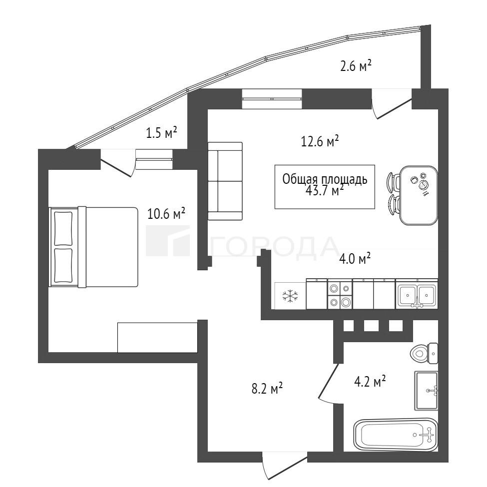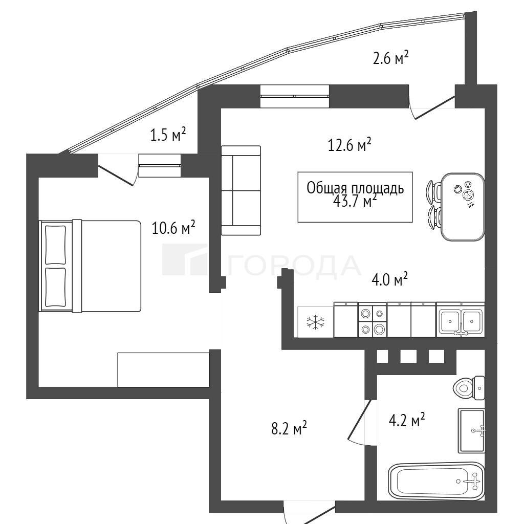 - 43.7 м2