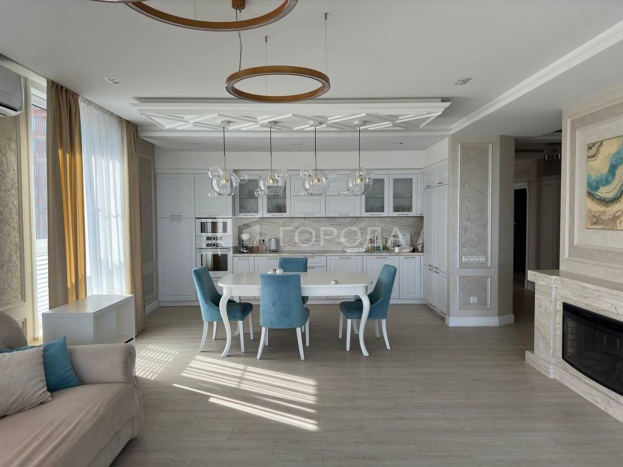В квартире установлены три кондиционера, электрический камин в кухне-гостиной и теплые полы в душевой.