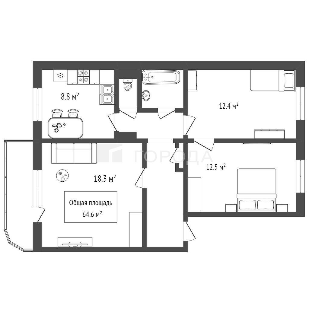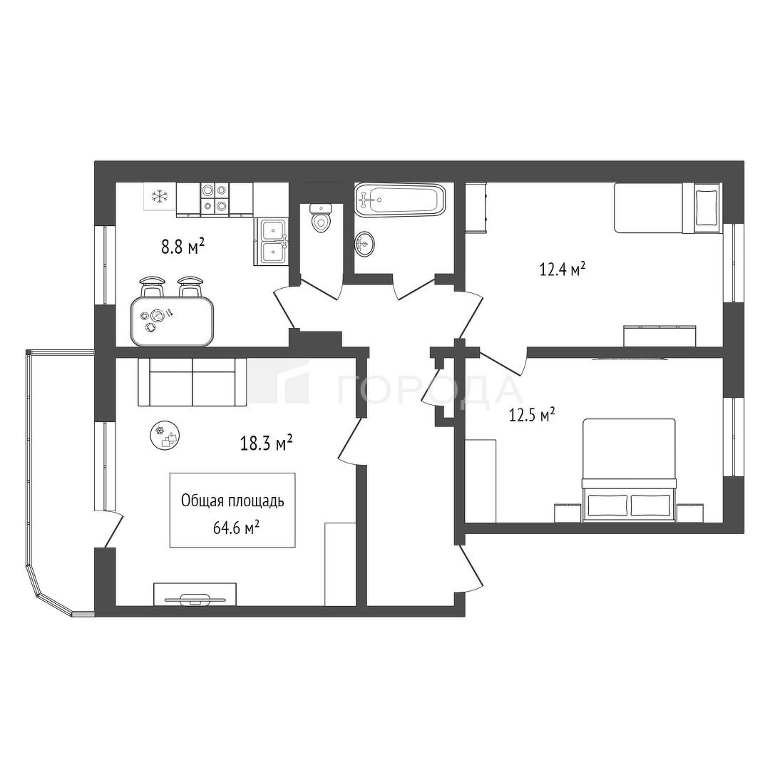 - 64.6 м2