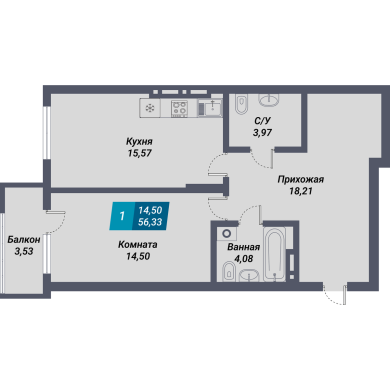 56.33м²