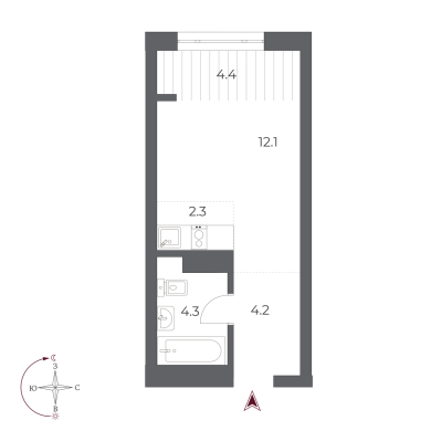 42.9м²