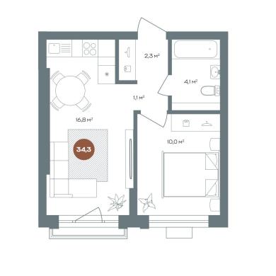 34.3м²