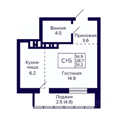 28.6м²