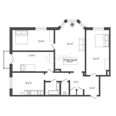 90.9м²