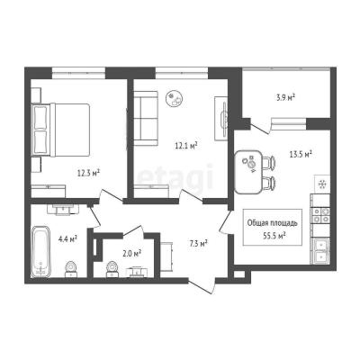 55.5м²