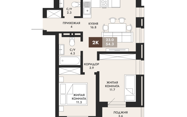 - 54.3 м2