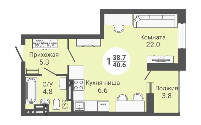 - 40.6 м2