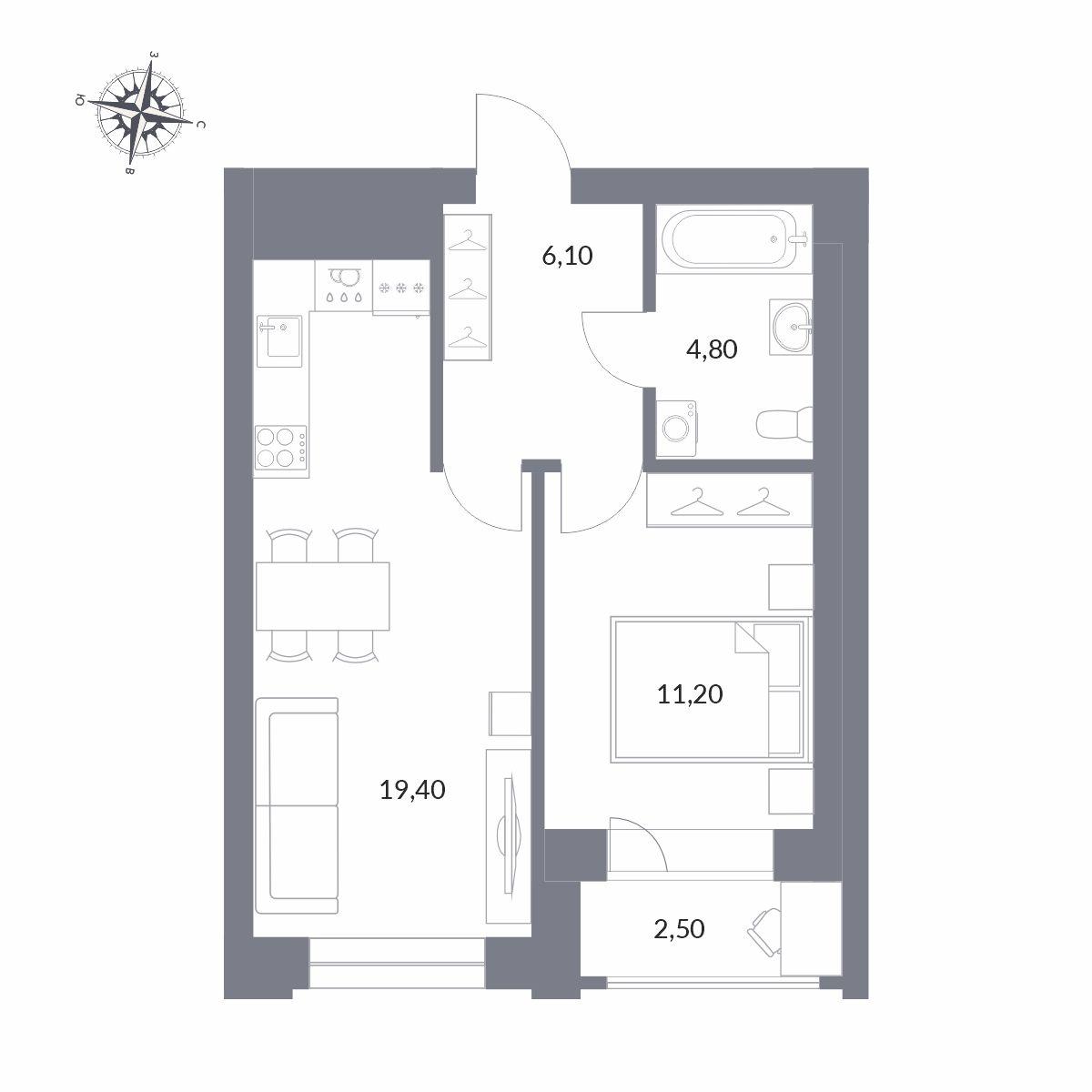- 44 м2