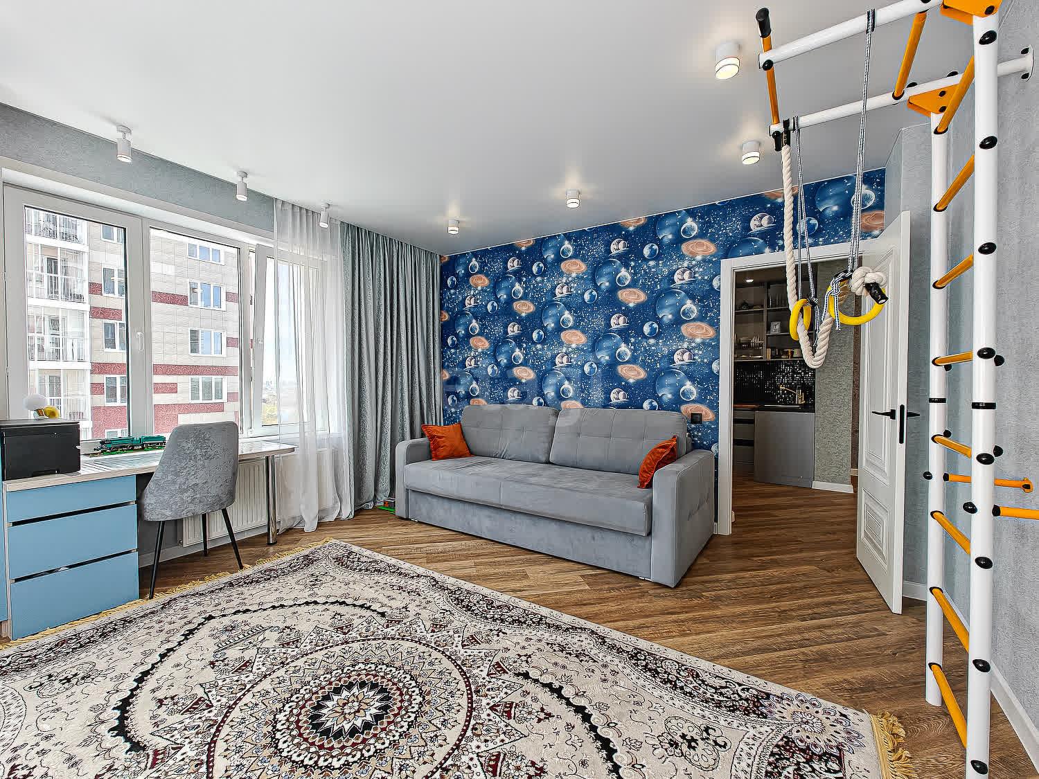 • Просторная планировка: большая гостиная, объединённая с кухней, и две уютные спальни (одна с окнами на две стороны)