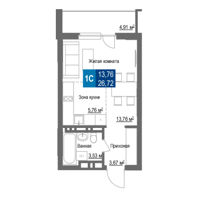 26.72м²