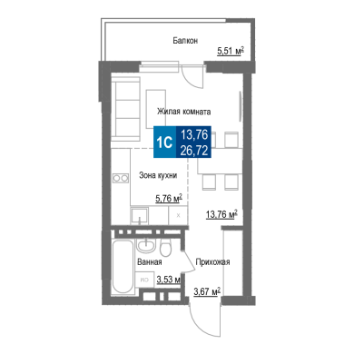 26.72м²