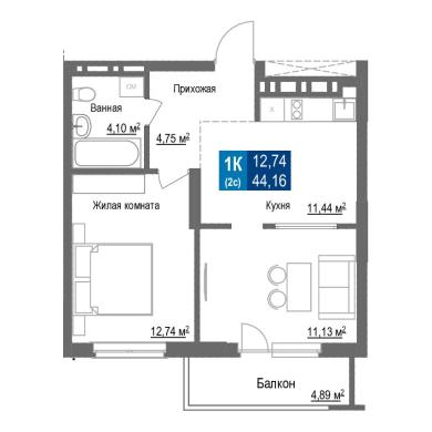 44.16м²