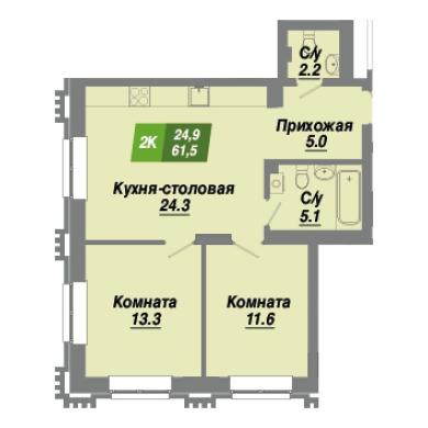 61.5м²
