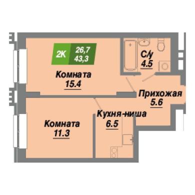 43.3м²