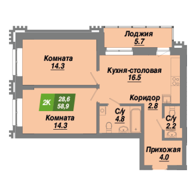 58.9м²