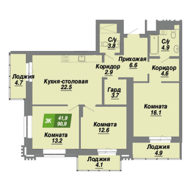 90.9м²