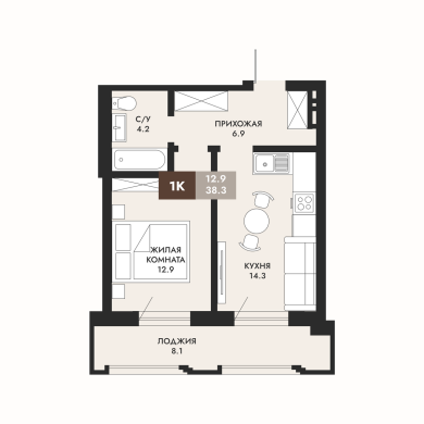 38.3м²