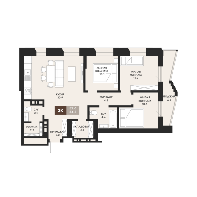 84.3м²