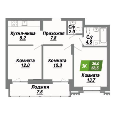58.5м²