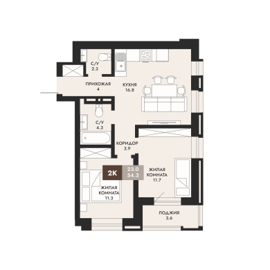 54.3м²