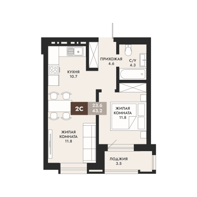 43.2м²