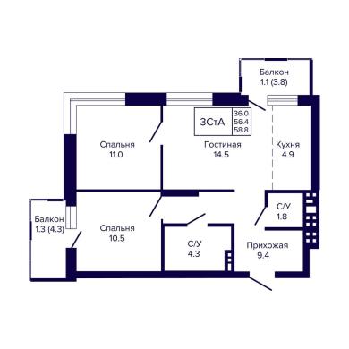 58.8м²