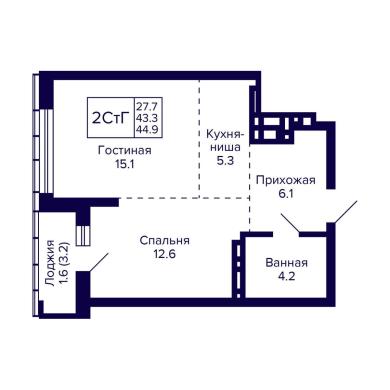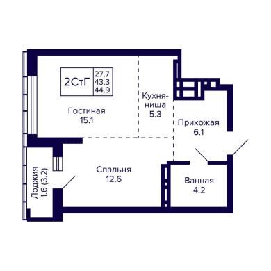 44.9м²