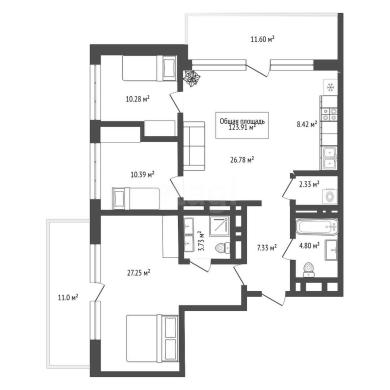 123.91м²