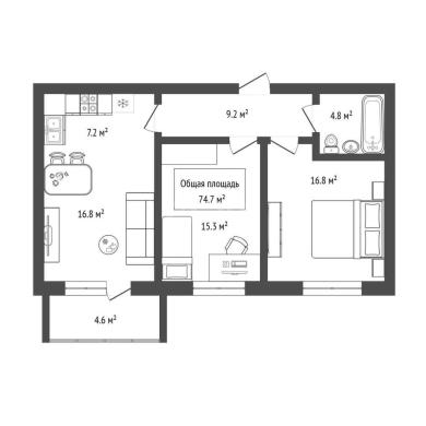 74.7м²