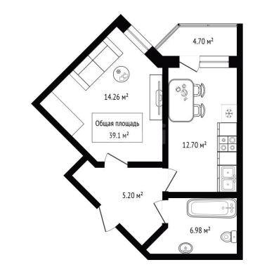39.1м²