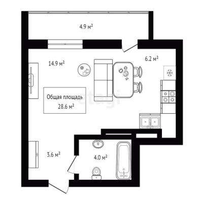 28.6м²