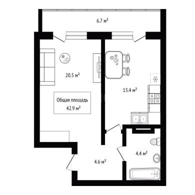 42.9м²