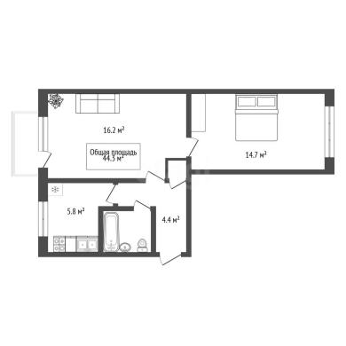 44.3м²