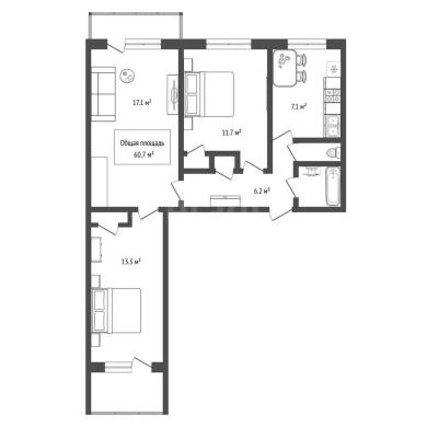 60.7м²